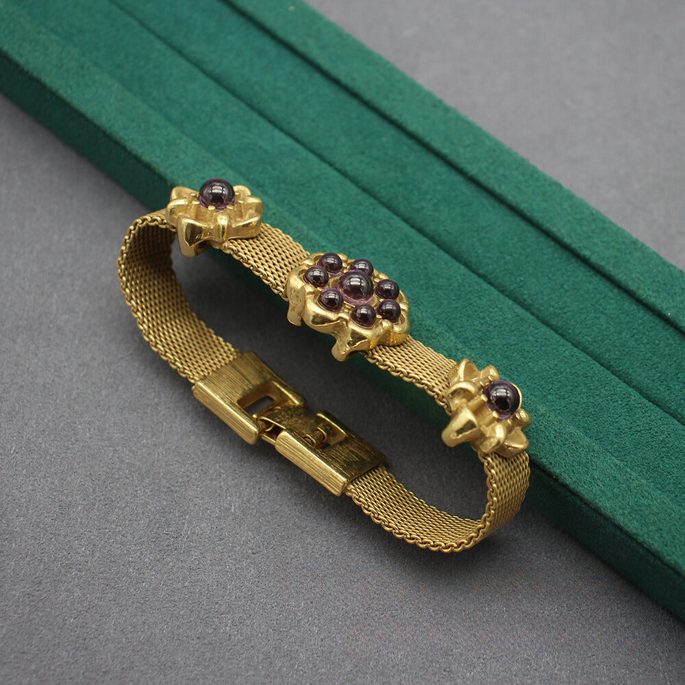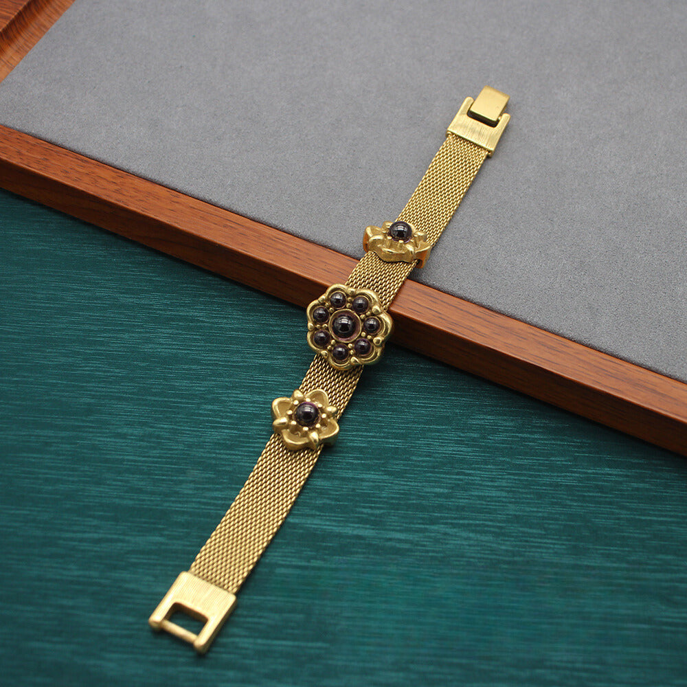 ✨Elegant Design: Sophisticated Purple Zircon Flower Petal Bracelet crafted with gold-plated copper, perfect for adding a touch of glamour to your evening wear and memorable occasions.