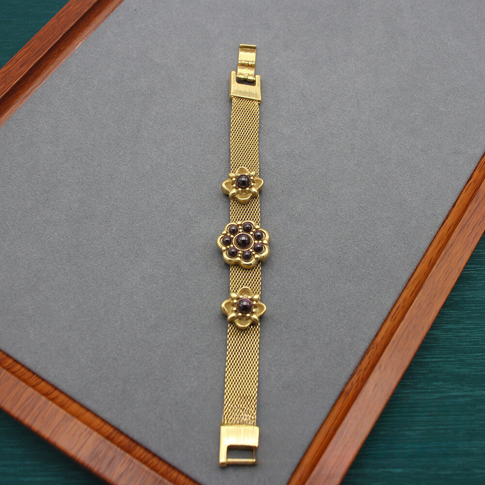 Sophisticated Purple Zircon Flower Petal Bracelet - Gold-Plated Copper Elegance, Perfect for Evening Wear & Memorable Occasions, Exquisite Gift Idea