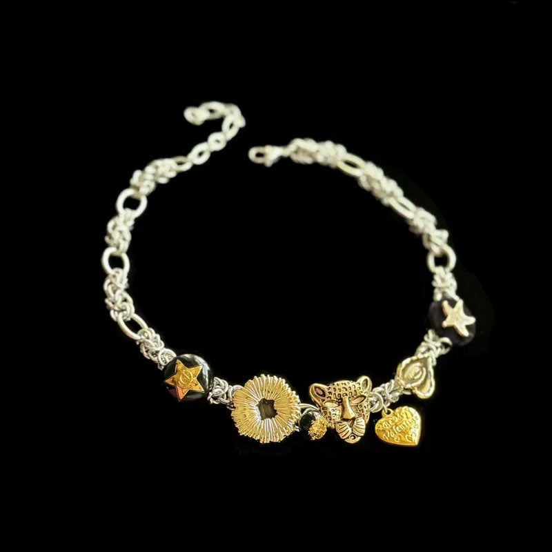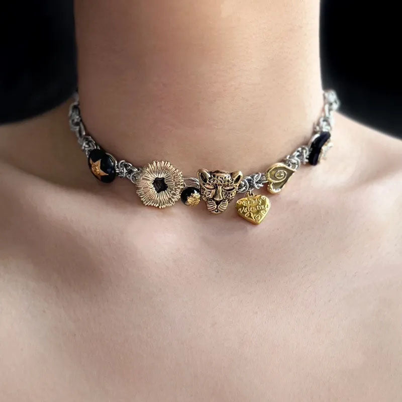 Layered leopard and cat metal vintage necklaces, punk retro style, Y2K necklace, creative and unique, perfect gifts for men & women