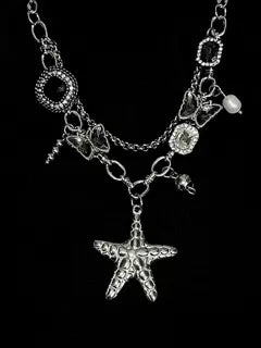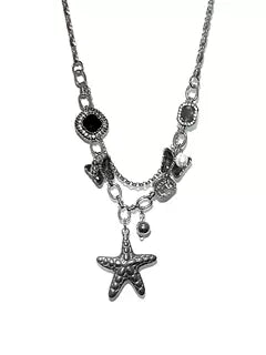 Starfish-Shaped, Stylish Double Layer Necklace with Butterfly and Gemstone Accents,metallic Y2K necklace