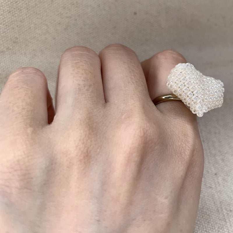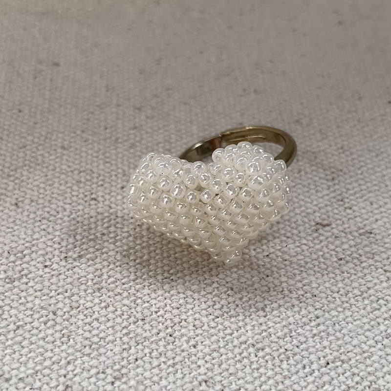 Sweet French Design Bead Woven Heart Shape Earrings,Bead Rings,Adjustable Rings Jewelry Earrings High End Minimalist Pearl Earrings Luxury Temperament Women Earrings