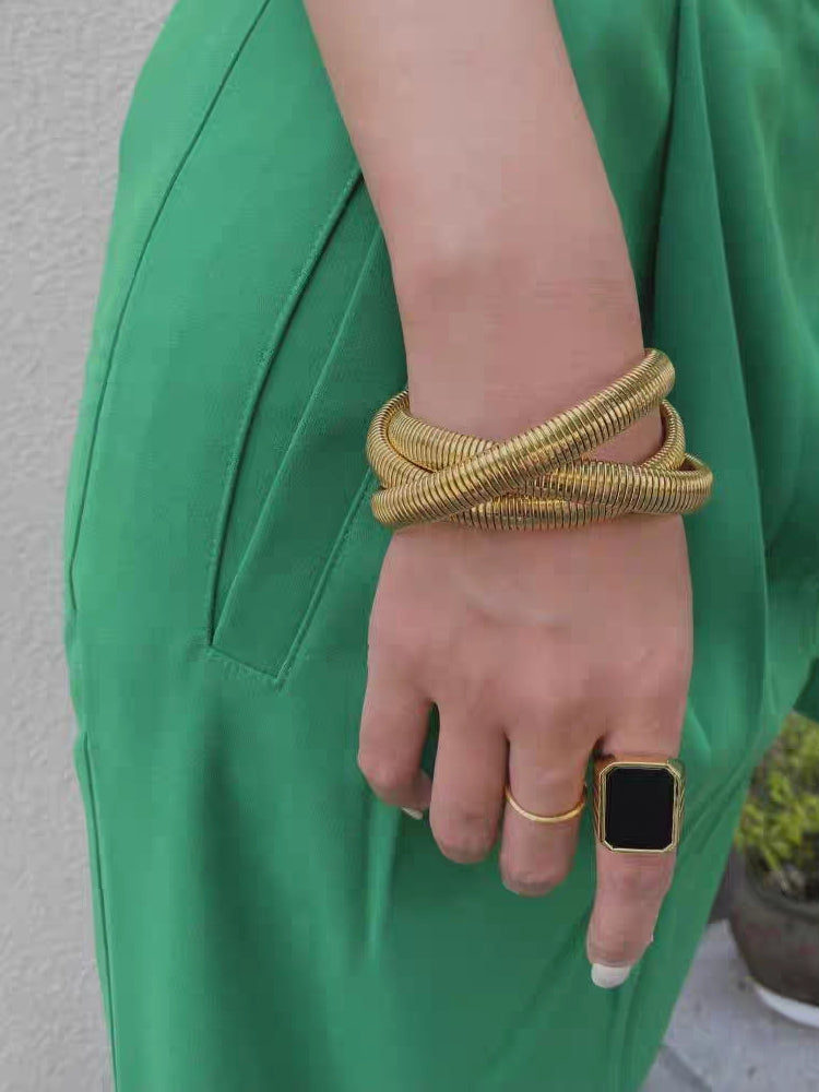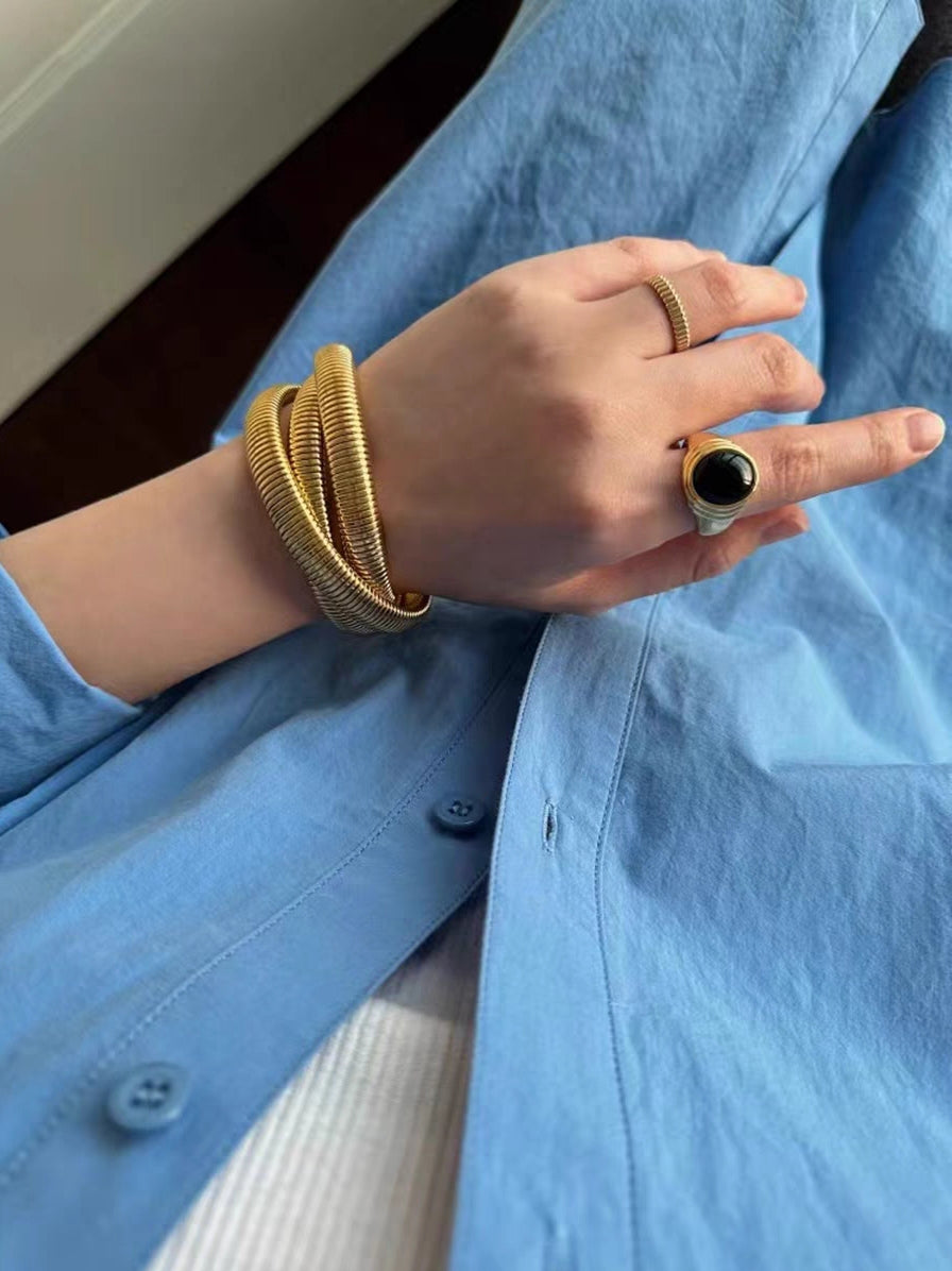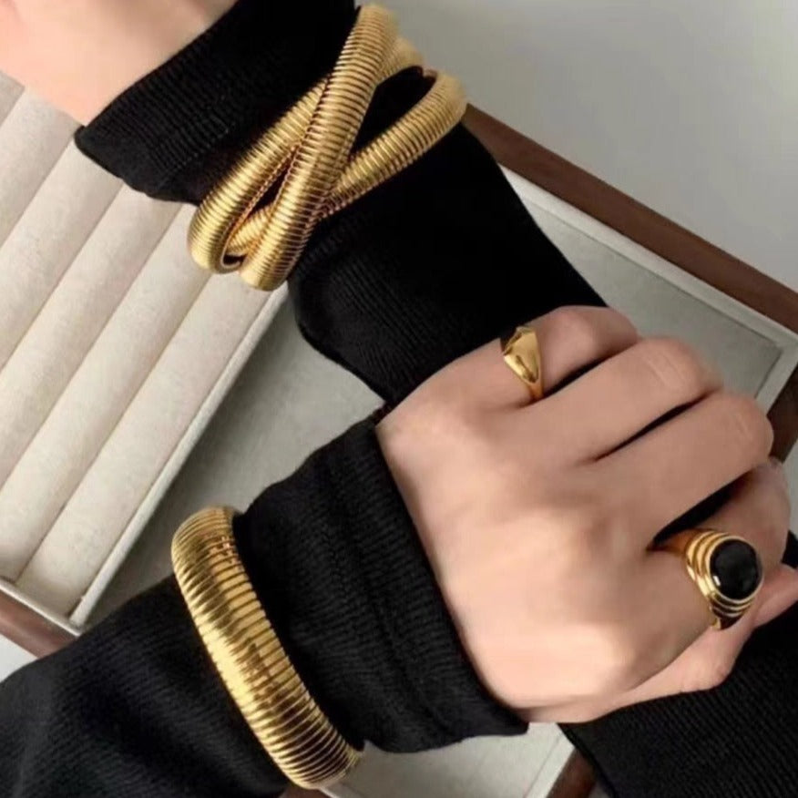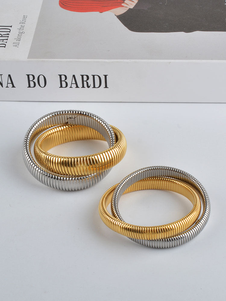 Triple Loop Elastic Bracelet, Vintage Style, Exaggerated Textured Cuff, Titanium Steel Stackable Bangle