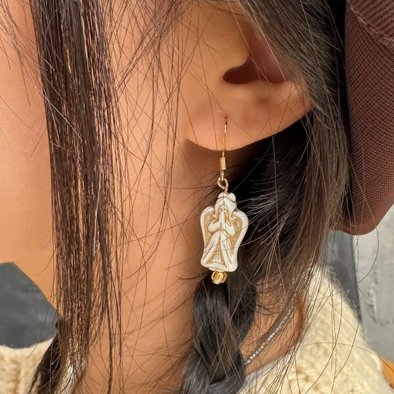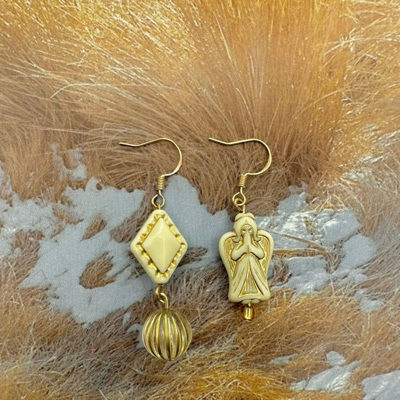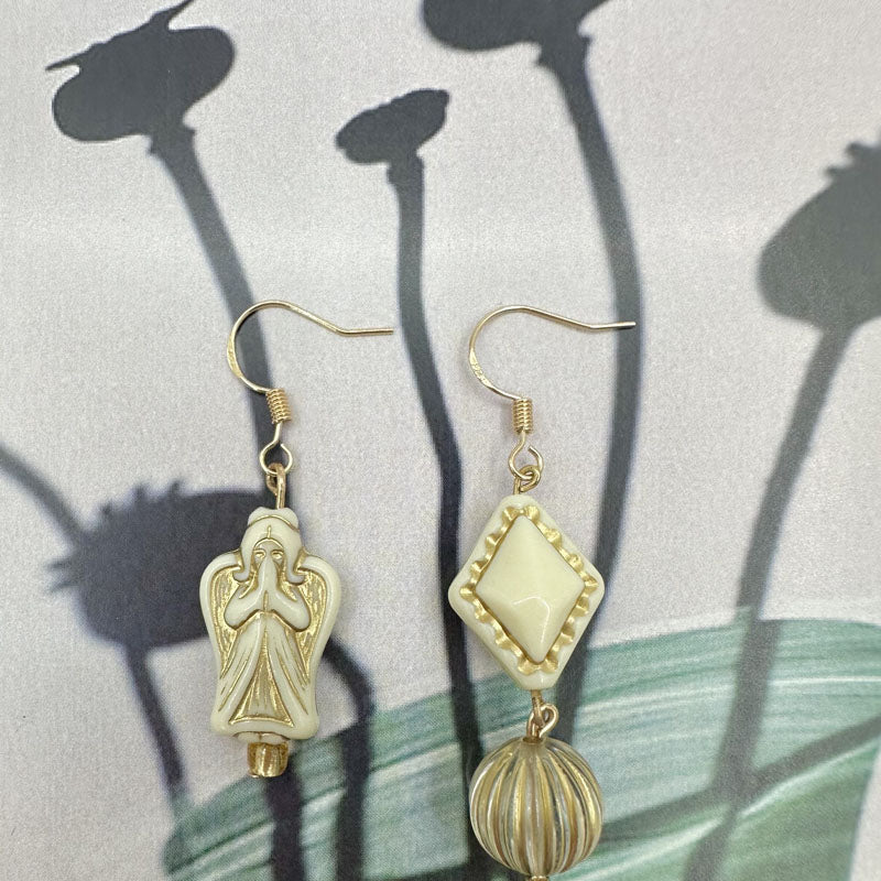 Vintage Czech Pearl Angel Gold Asymmetric Earrings for Women Teens Earrings Hook