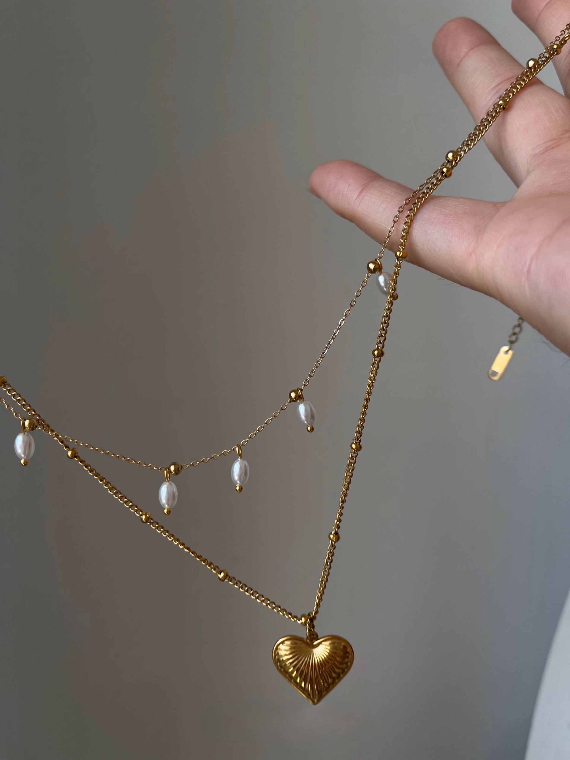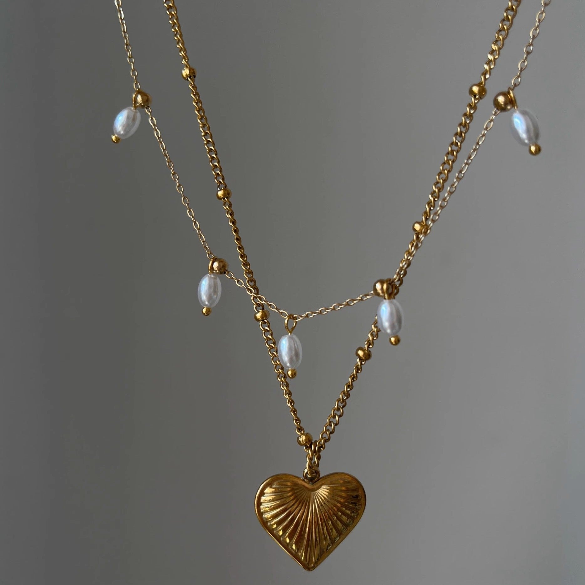 Vintage French Chic Delicate Pearl Heart-shaped Titanium Steel Layered Necklace
