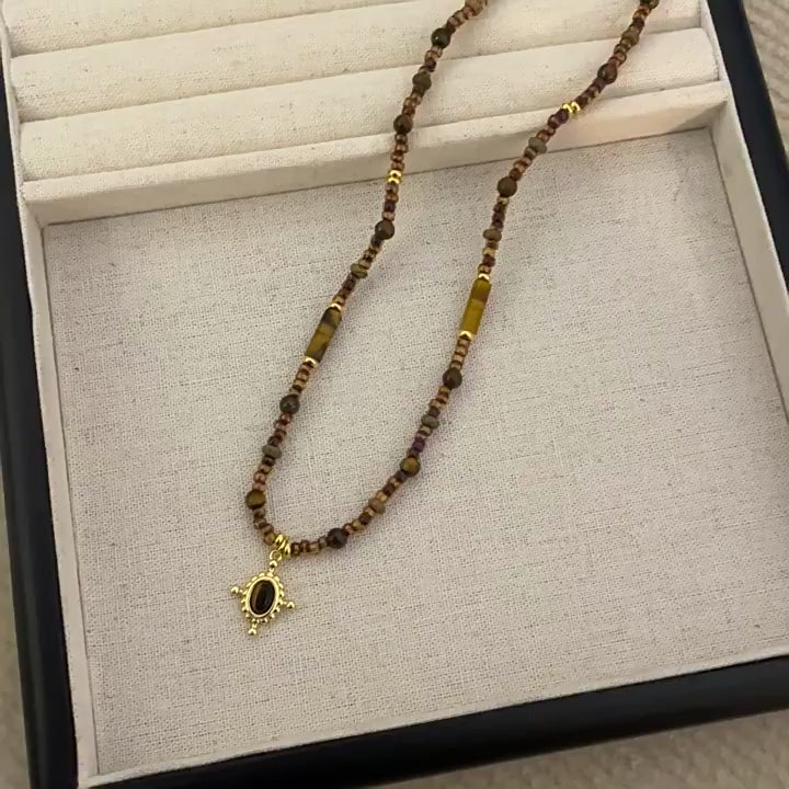 ✨Original Stone Beads: The necklace is adorned with beads made from original stones, each with its own unique characteristics, adding depth and texture to the design.