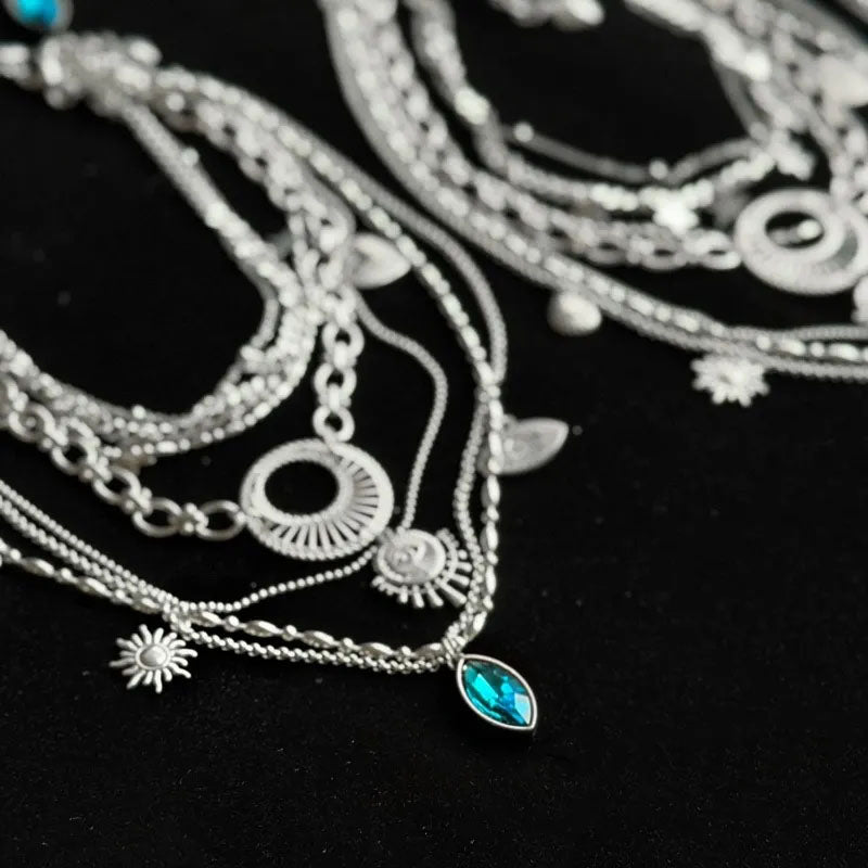 Vintage Style: This necklace features a vintage-inspired design with Multi layered and Heavy Industry Design,Gemstone pendant embellishment,perfect for adding a touch of retro charm to any outfit.