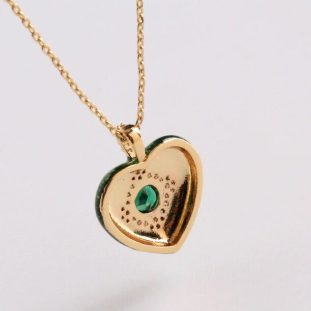 Featuring a European-style green heart-shaped pendant. This necklace combines fashion and a sense of light luxury, perfect for elegant accessorizing. The necklace length is 36cm with a 6cm extension chain. Available in four color options.