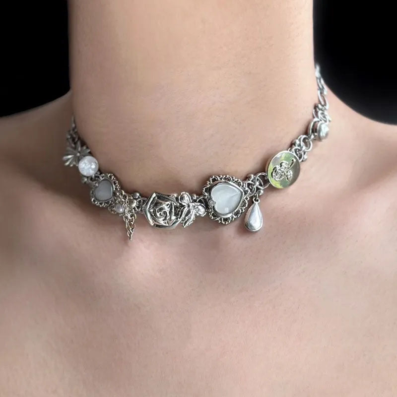 Vintage Metal Titanium Steel Handmade Y2k Necklace Choker for Women and Girls