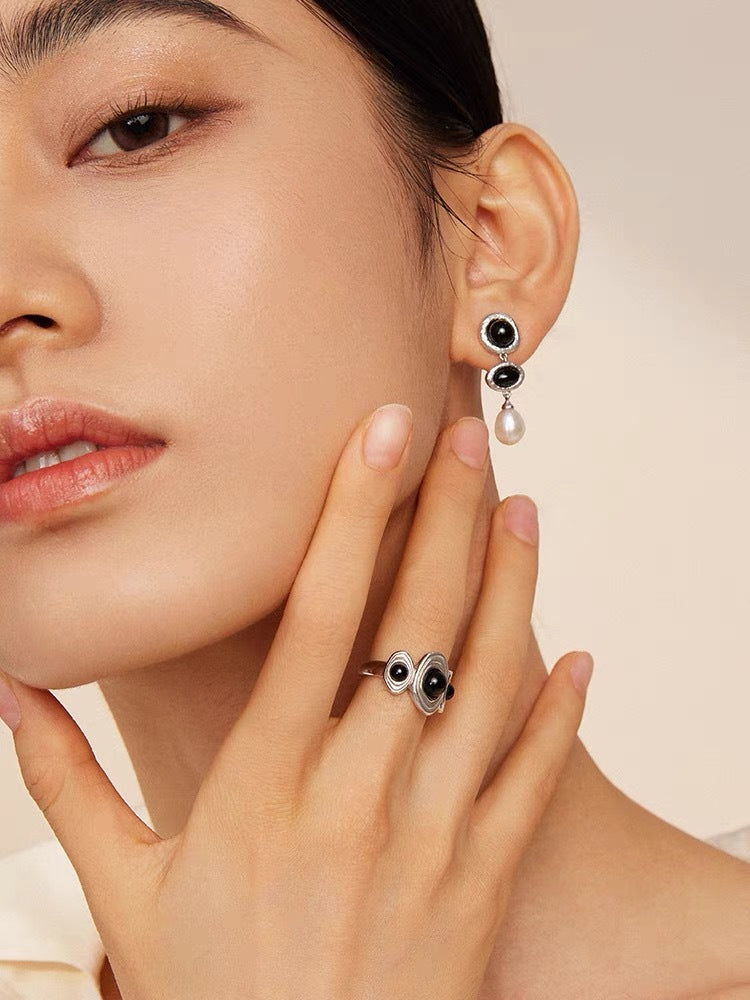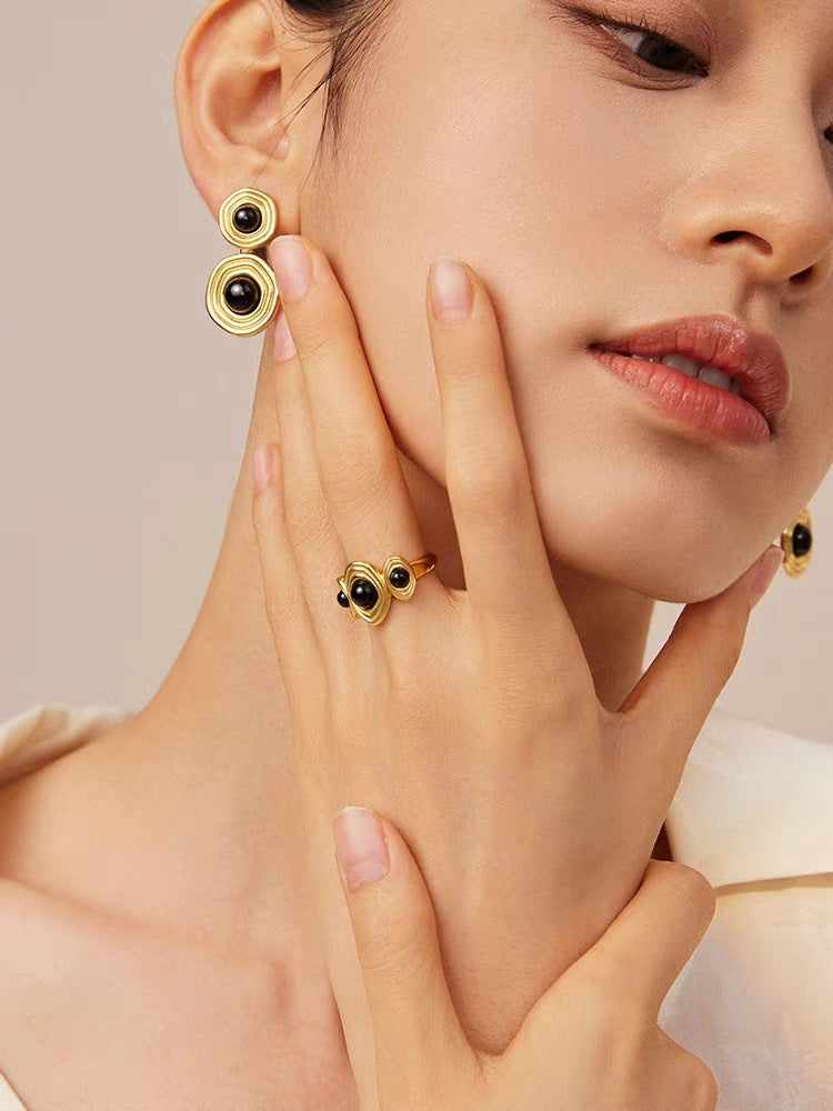✨Black Obsidian: The centerpiece of this ring is a black obsidian stone, known for its glossy black color and protective properties, adding a touch of mystery and elegance.