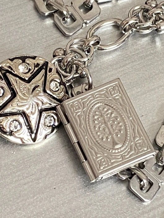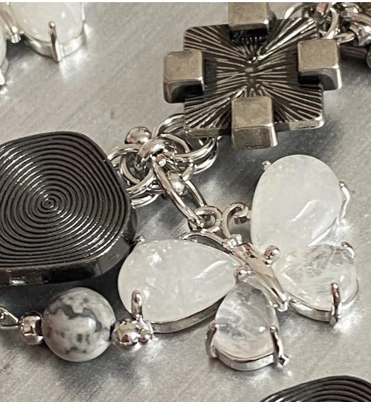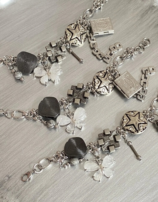 vintage punk Crystal Butterfly Bracelet,Silver star button,Multiple metal element design bracelet
