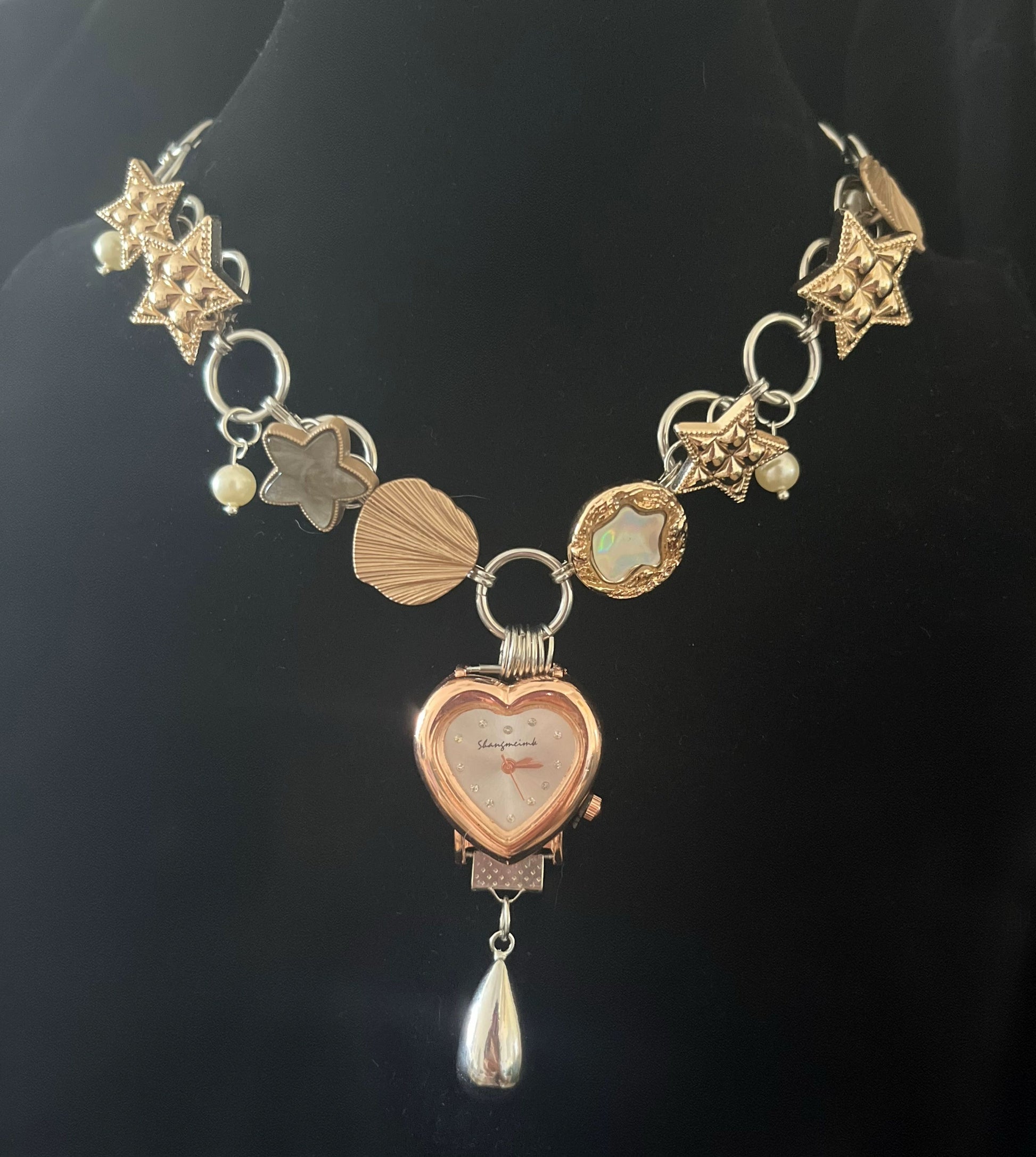 This necklace is made of watch with titanium steel chain. A unique pendant watch with a titanium steel construction and cyberpunk design