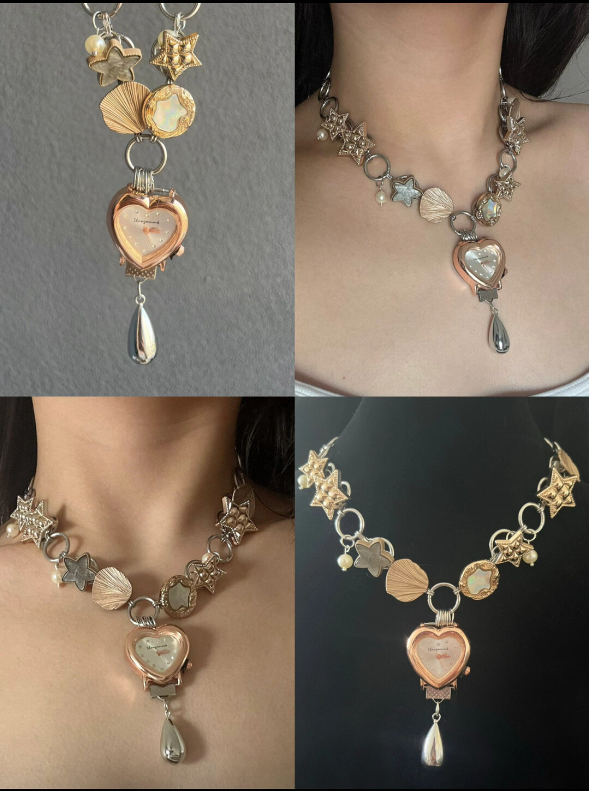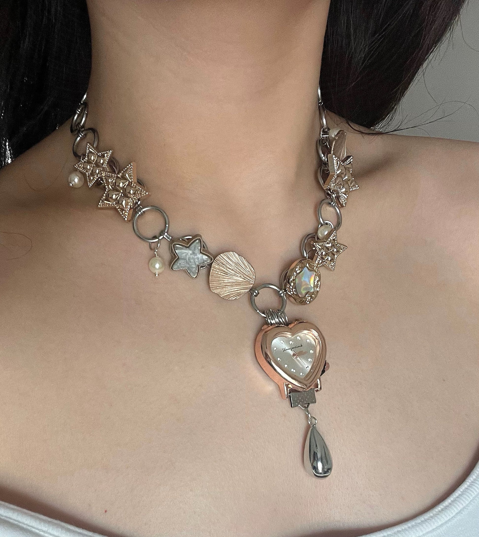 Cyber Punk Vintage watch choker, Original design chunky chain niche style, elegant and trendy Necklace