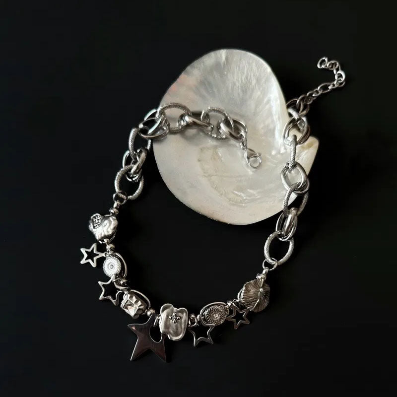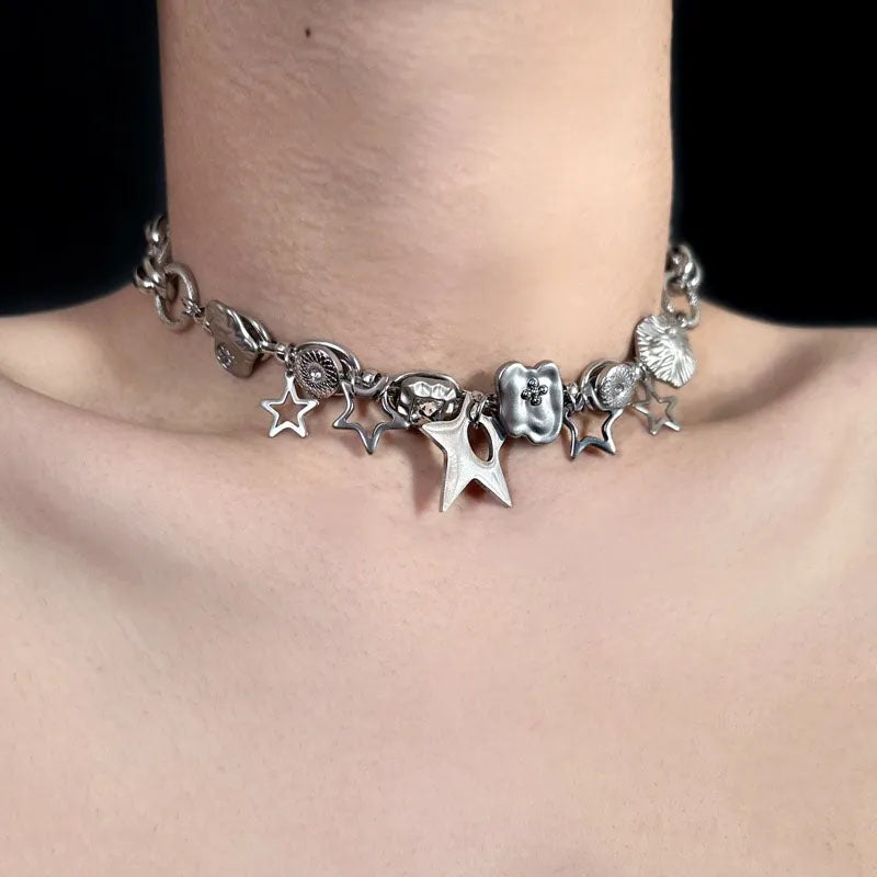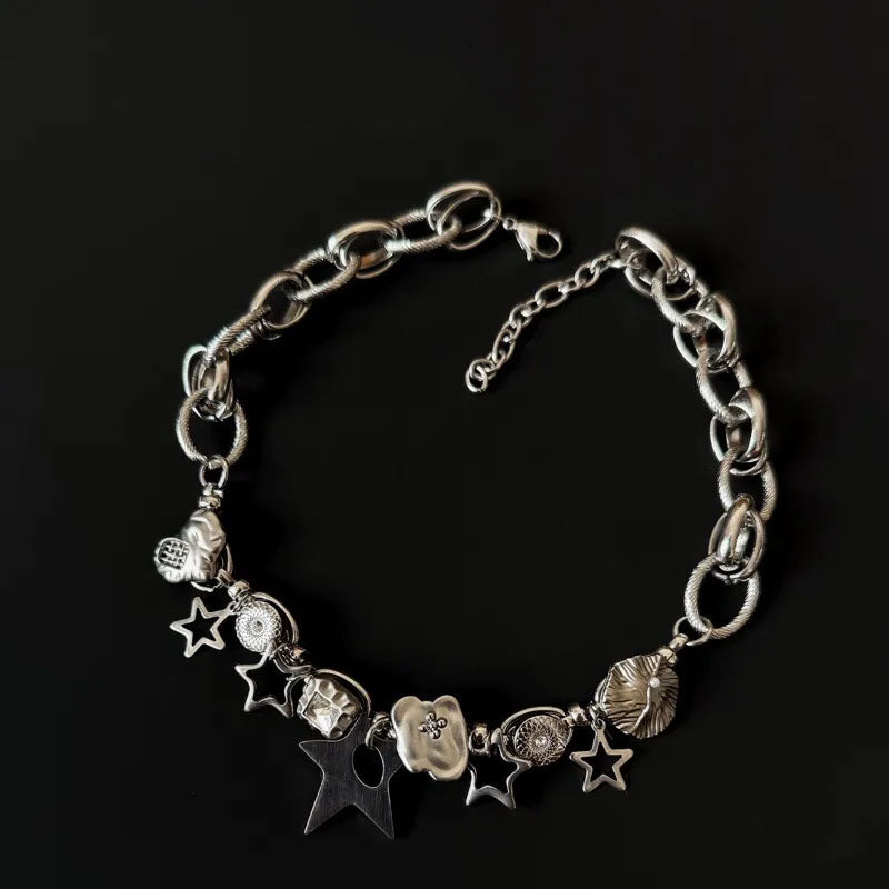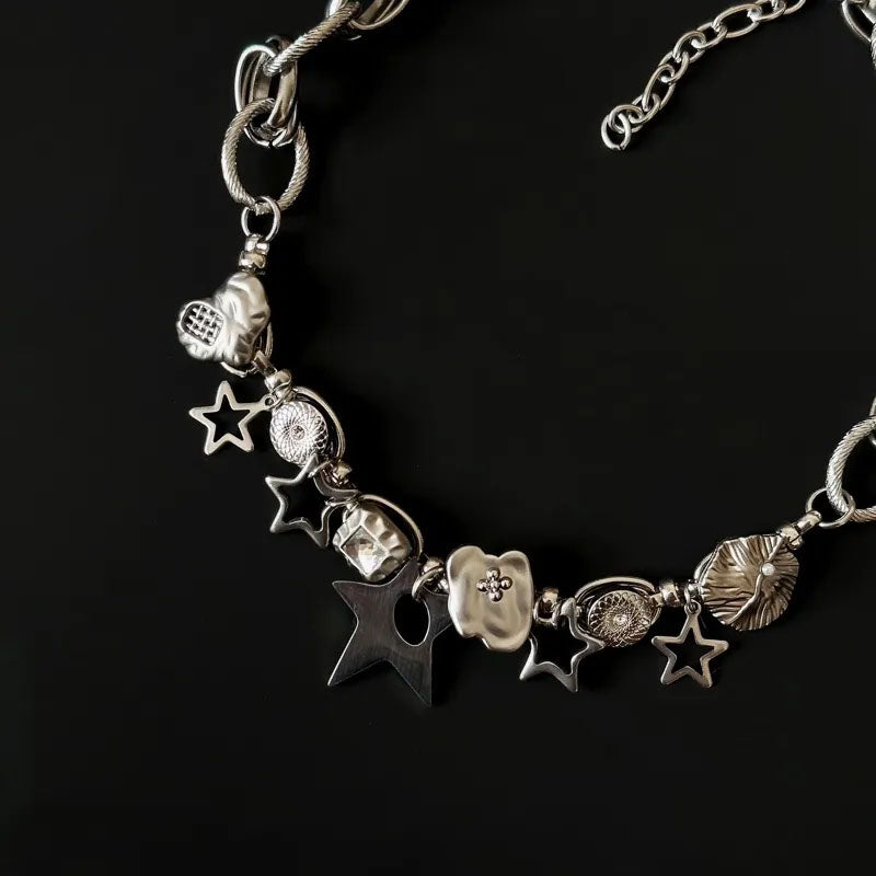 Vintage Y2k Necklace Star Pendant Choker Titanium Steel Handmade Necklace Choker for Girls Women