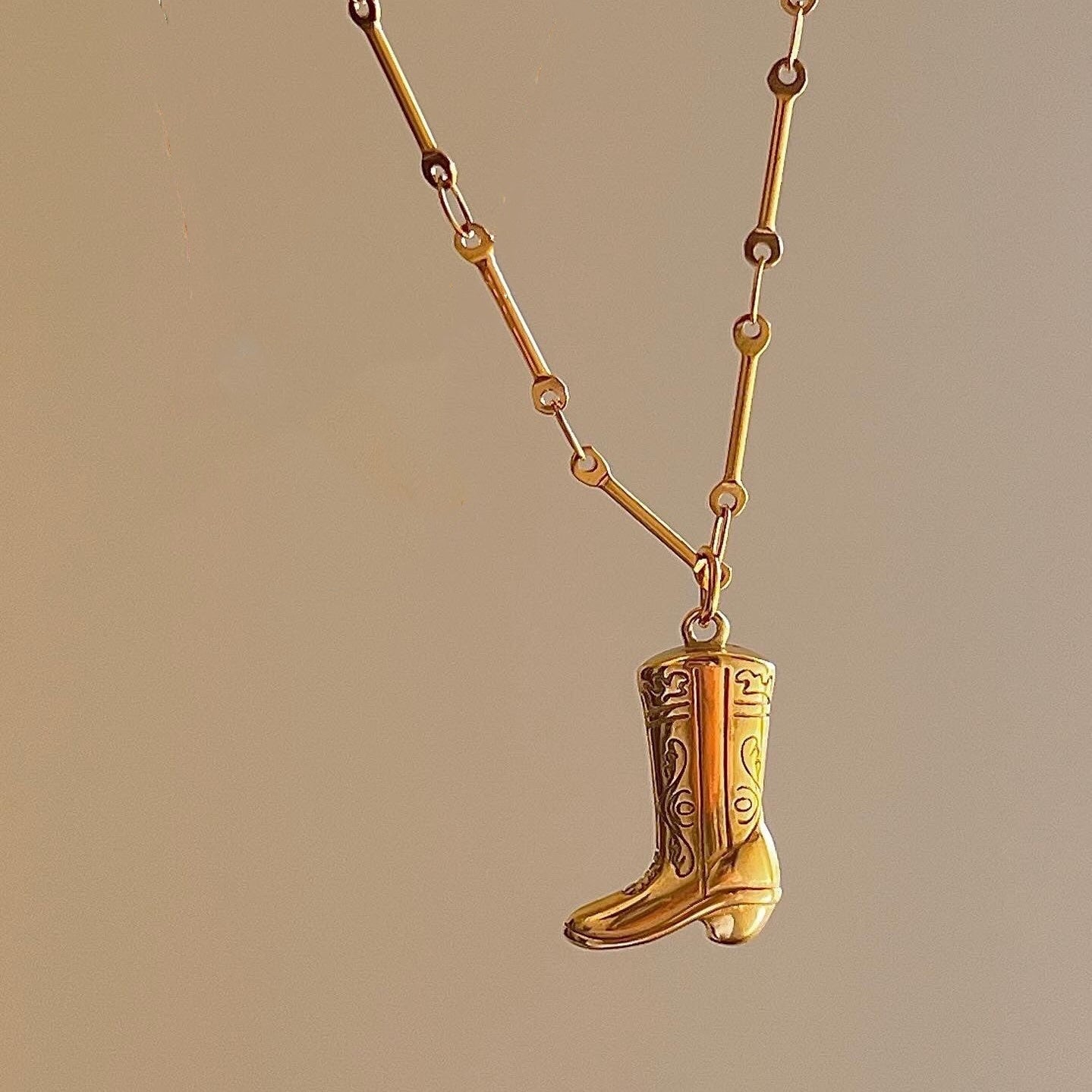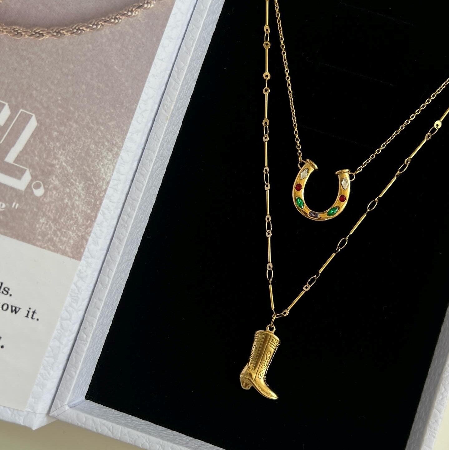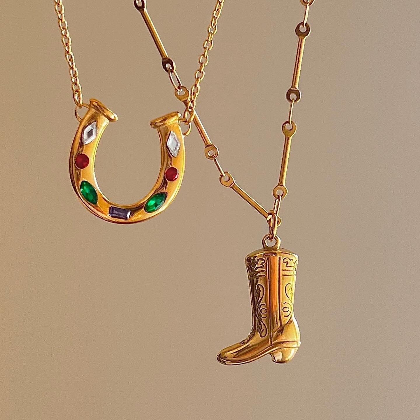 Western Cowboy Boots and Horseshoe Pendant Necklace