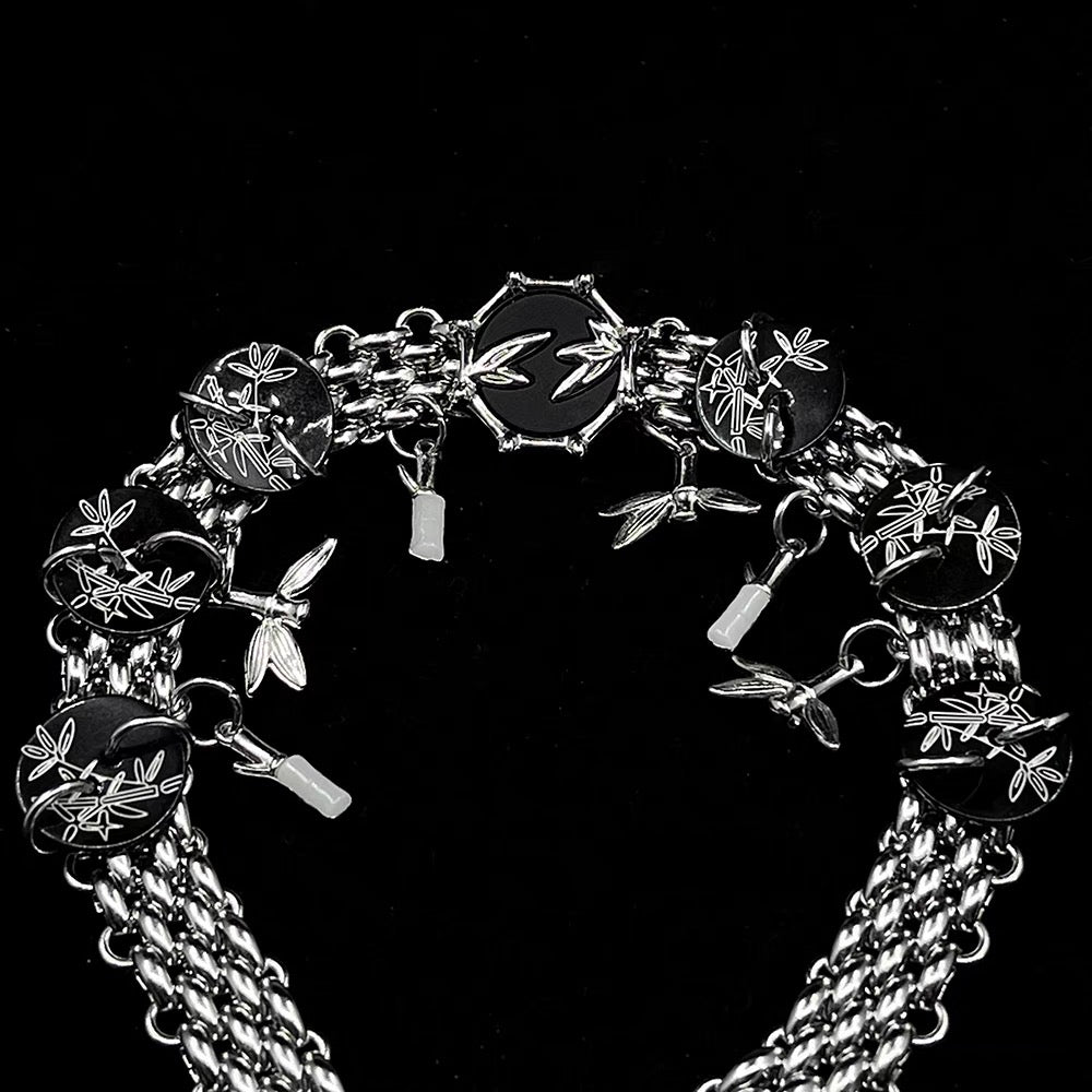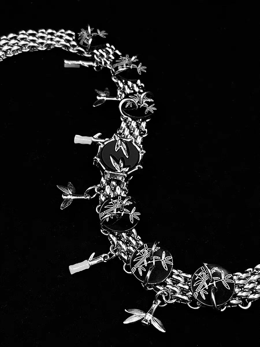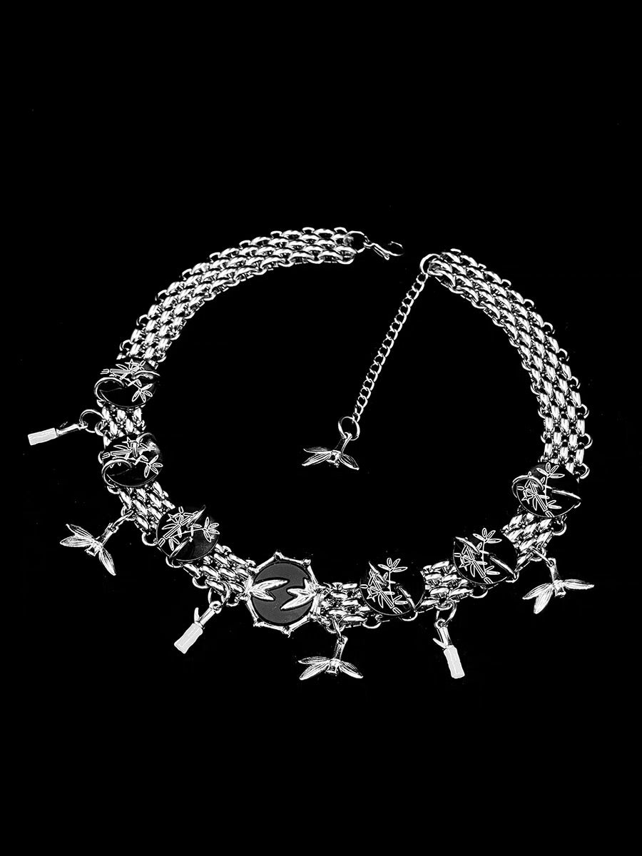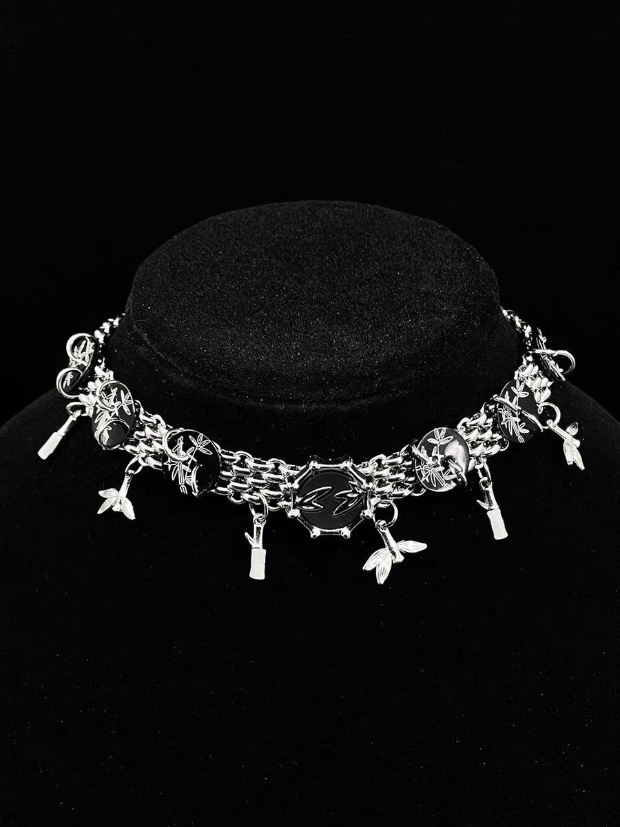 Y2K Chunky Necklace Niche Punk Style Choker Trend Clutter Cool Chain with Bamboo Pendant