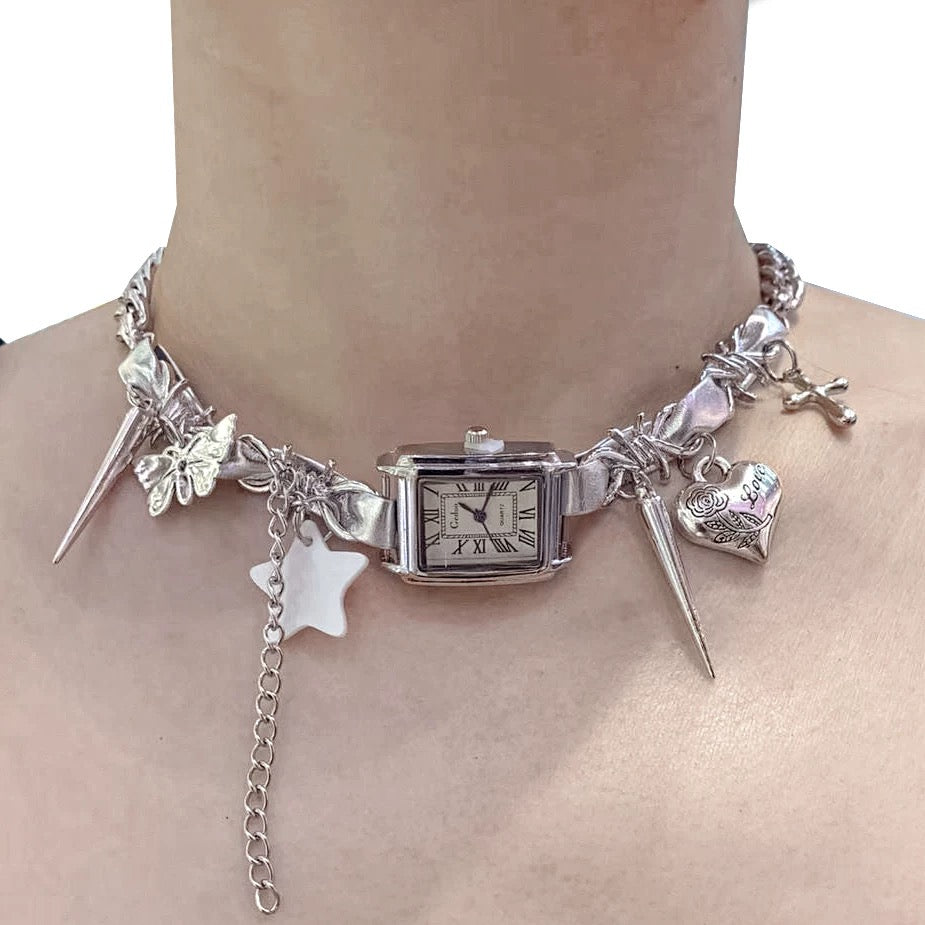 Features a watch on the collar with tassels, star and heart pendant, adding a touch of vintage glamour to your ensemble. Choosing this necklace is a right choice to express your personality and set off your beauty.