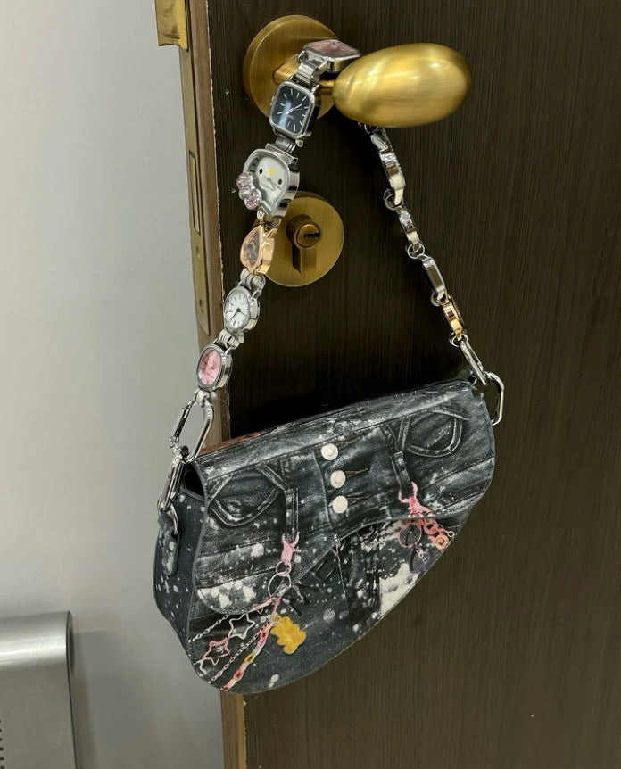 Versatile punk-chic chain works as both a watch bag strap and edgy waist chain.