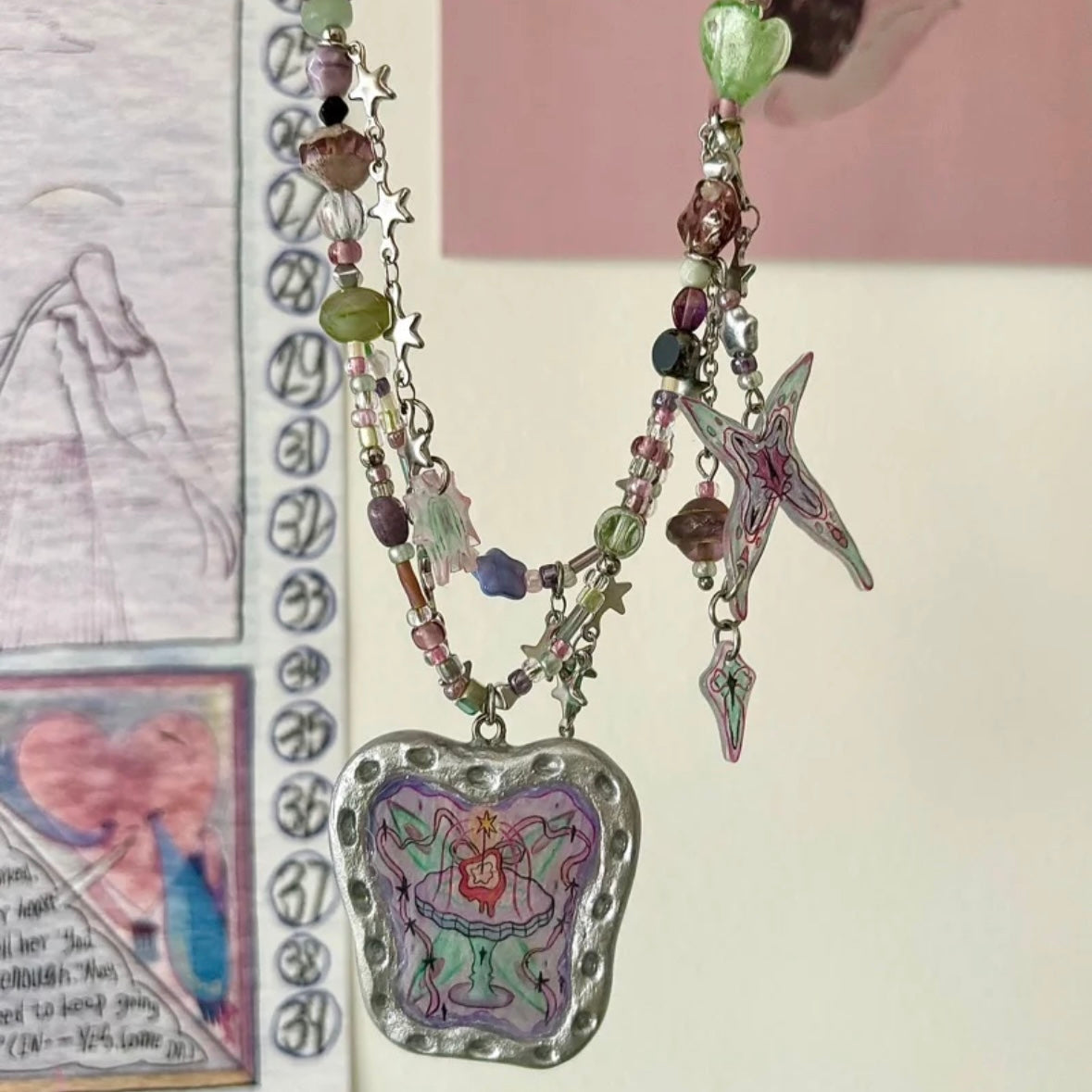Colorful Y2K necklace is made of handmade shrink sheet and beads. Each necklace has a different style. They look cute. It is a good gift for any occasion. It can be given to you Bring more charm.