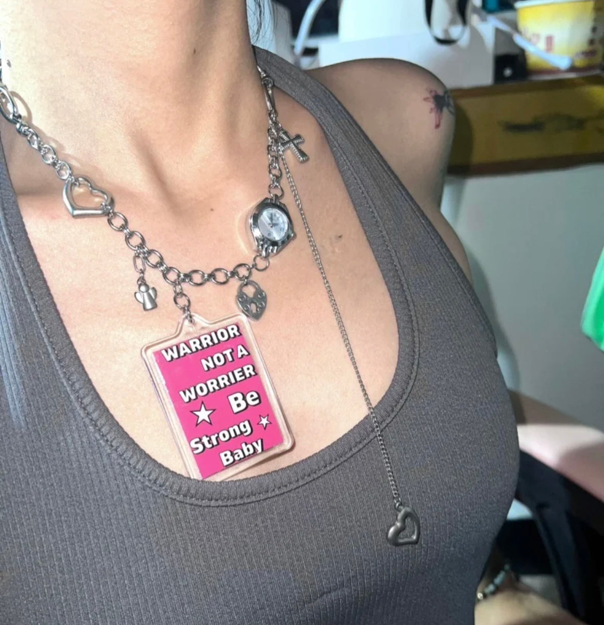 Y2K Niche Punk Watch Choker Chunky Trendy Tassels Pendant Necklace Silver Link Chain